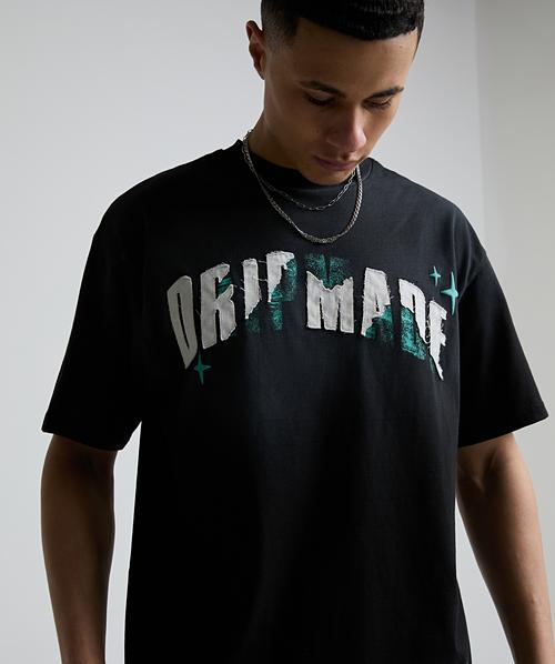 Boosting your day-to-day look with a lick of paint, this regular fitting short-sleeved tee has a comfy ribbed crew neck collar for stretchy versatility, straight hem, large embroidered and distressed Dripmade arch branding to front, topped off by contrast paint splatters and brush strokes throughout for a great artistic look. Perfect for either wearing standalone or as part of a layer on those cooler days. This product is 100% Cotton.