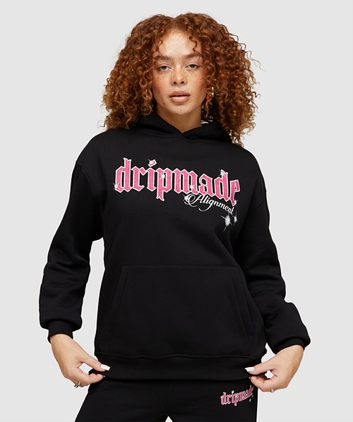 An absolute undisputed classic layering staple…but with a twist. On the face of it, this looks like the overhead hoodie we all know and love; fixed hood, rib cuffs and hem, front kangaroo pocket…so far so good. Then one look at the back and suddenly you’re in ‘WOW’ territory. The addition of the unique tipped drawstring lace up design to the back is a masterstroke and looks as good as it feels as it can be tightened, tied and cinched to change the shape of the hoodie. Large contrasting graphic Dripmade print to chest. This product is 81% Cotton and 19% Polyester (Excluding trims).